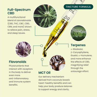 Crafted with Full-Spectrum CBD and a rich profile of natural cannabinoids and other hemp-derived beneficial ingredients, our Tinctures can be an all-in-one solution for reclaiming balance, easing discomfort, and enjoying restful nights. Available in Regular, Extra, and Maximum Strength, these Tinctures are infused with MCT oil for better absorption, offering you a path toward less tension, more movement, deeper sleep, and brighter days. These Tinctures are a perfect way to support your goals, whether it’s crushing a workout or unwinding at the end of a busy week.*