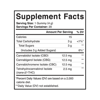 Ease aches and soreness from everyday activity so you can move freely again with a fast-acting Relieve & Ease hemp-derived THC gummies. Each delicious Citrus Ginger flavored gummy contains a precise and moderate dose of 2.5mg THC with CBC, CBG and CBD cannabinoids. This blend was crafted so you can feel less discomfort and carefree in 15 minutes or less. Get back into your groove with Brightside.