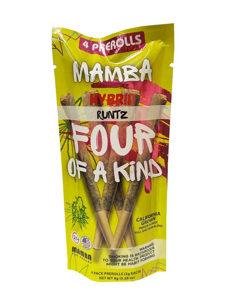 WARNING: This product: Runtz Mamba Madness Full Spectrum Blend Pre-Roll 4ct 8G may contains nicotine. Nicotine is an addictive chemical.