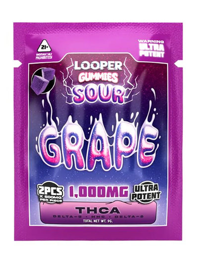 - Please Copy coupon before purchasing Sour Grape Looper THCA+Delta-9+HHC+Delta-8 Gummies 2ct 1000mg.Â