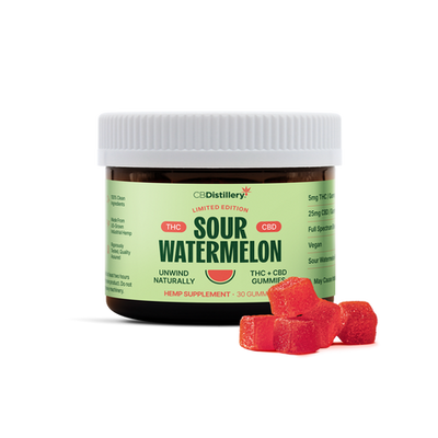 - Please Copy coupon before purchasing CBDistillery Sour Watermelon 5mg THC + 25mg CBD Gummies.Â