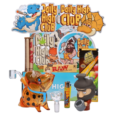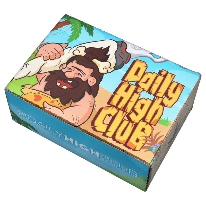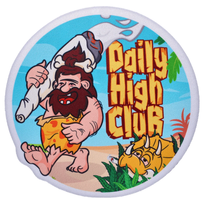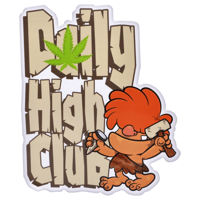 - Caveman Carving Sticker – A puffing caveman chiseling “Daily High Club” into rock? Iconic.