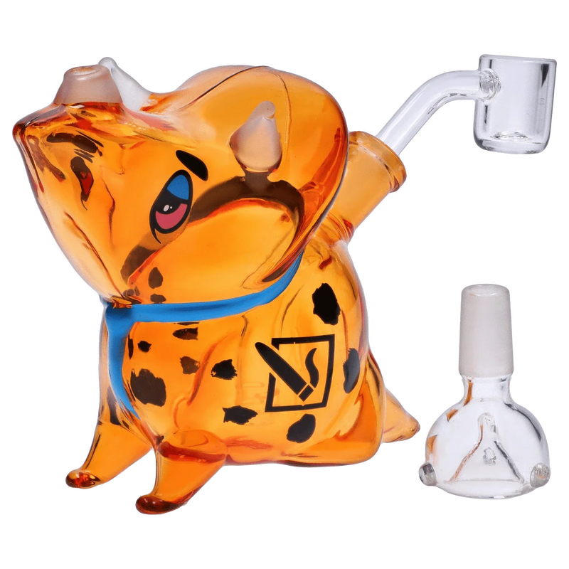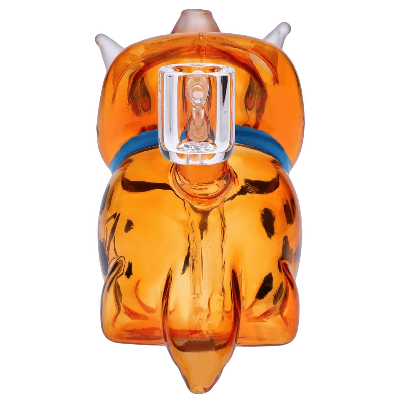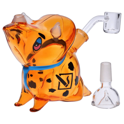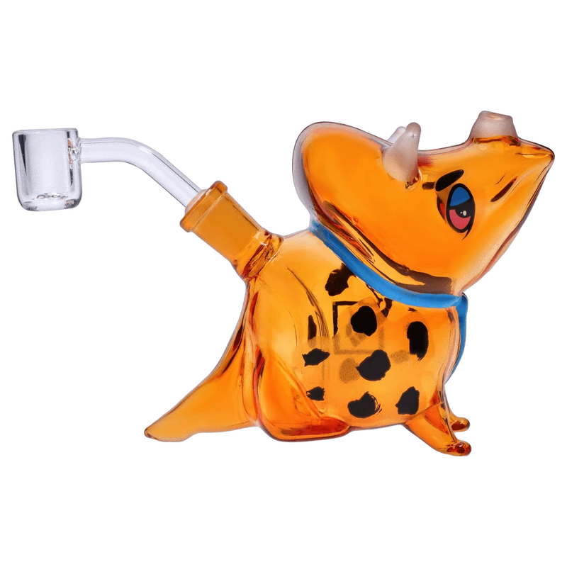 🦕 Puffasaurus Bong – This amber-orange triceratops bong is ready to stomp into your collection. Crafted from thick, heat-resistant glass, it features a built-in perc for cool, clean rips and comes equipped with both a glass bowl and a quartz banger. Flower or concentrate? This beast does both.