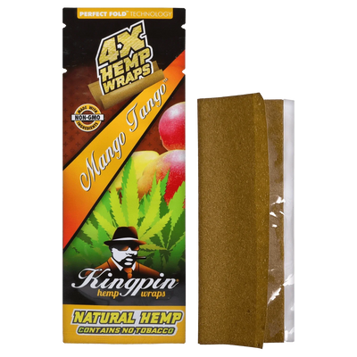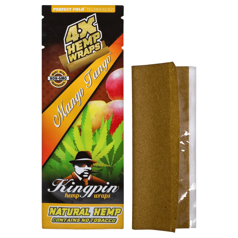 🥭 Kingpin Mango Tango Hemp Wrap – These tropical wraps are 100% tobacco-free and come with Perfect Fold Tech for easy rolling. The sweet mango flavor hits just right, and the resealable pouch keeps your stash fresh.