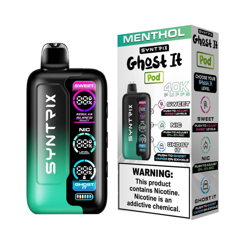 WARNING: This product: SYNTRIX Ghost It Disposable (40000 Puffs) may contains nicotine. Nicotine is an addictive chemical.