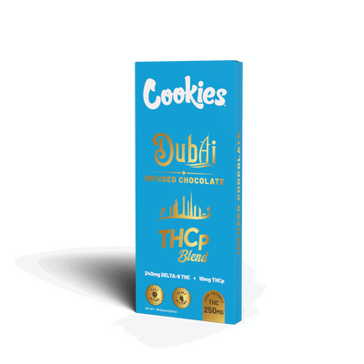 Cookies THC-P Dubai Chocolate is a luxurious and potent way to enjoy hemp-derived cannabinoids while indulging in a rich, smooth chocolate bar. Each bite delivers decadent flavor infused with the uplifting power of Delta-9 THC, enhanced by the strength of THC-P for a truly elevated experience. Perfect for unwinding, relaxing, or enhancing your evening, this bar combines premium taste with powerful effects. Crafted with care and precision, the Cookies THC-P Dubai Chocolate Bar contains a total of 250mg cannabinoids (240mg Delta-9 THC + 10mg THC-P) in a 100g bar. Because of its potency, dosing should be approached with caution.