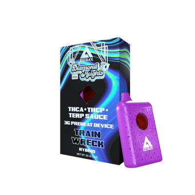 Extrax Diamond Heights are a great 3 gram disposable, that is popular with these awesome live terpene flavors. Enjoy these new fire strains of Green Crack, Northern Lights, Sour Tangie, Trainwreck and King Louis. Users may feel an extraordinary buzz and experience.