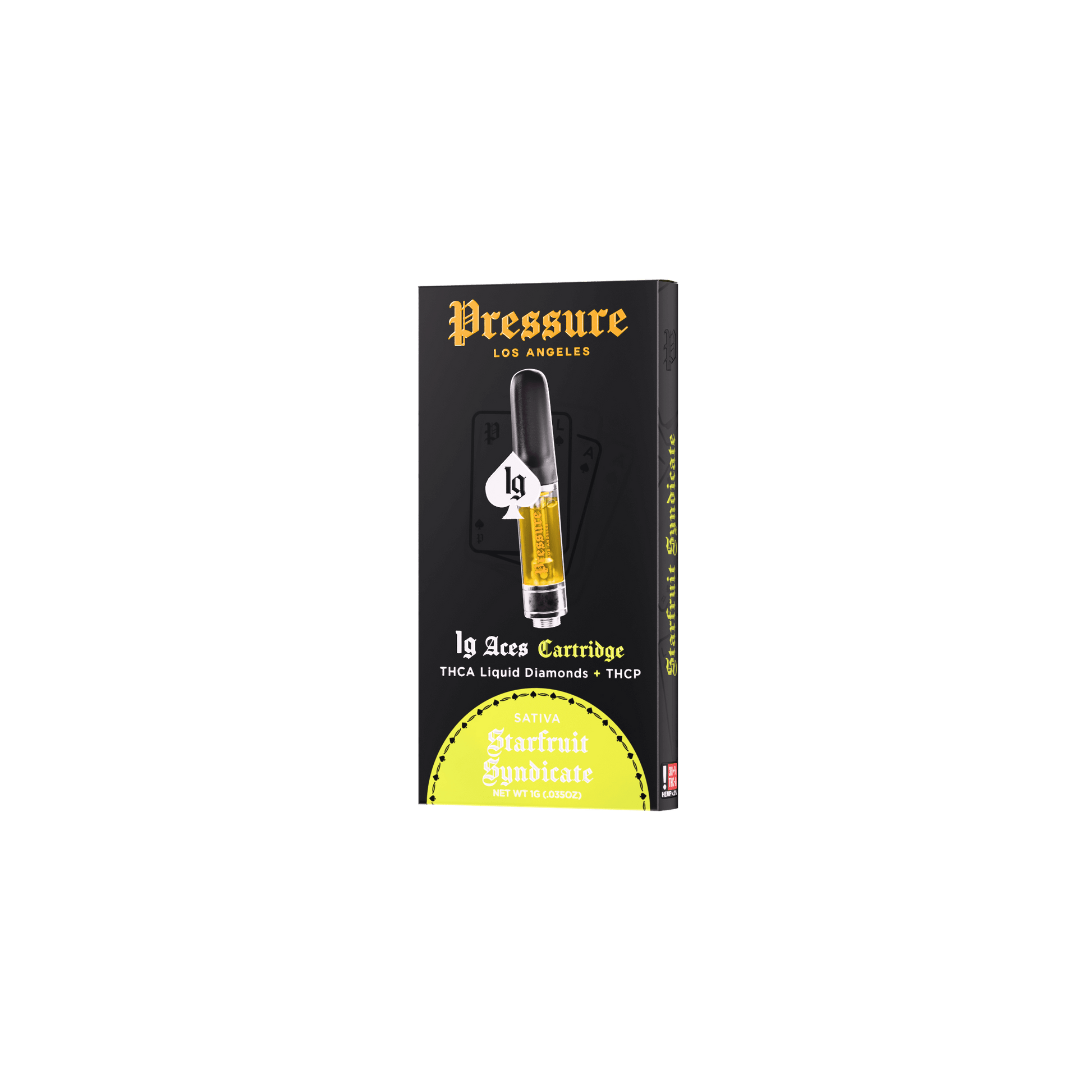 The Pressure LA 1g THC-A + THC-P Liquid Diamonds ACES Cart delivers a premium vaping experience packed with 1 gram of ultra-potent cannabinoids. Featuring a powerful blend of THC-A and THC-P, this cart provides smooth, flavorful hits with intense, fast-acting effects. Each strain is crafted with precision to highlight rich flavor profiles and balanced potency.