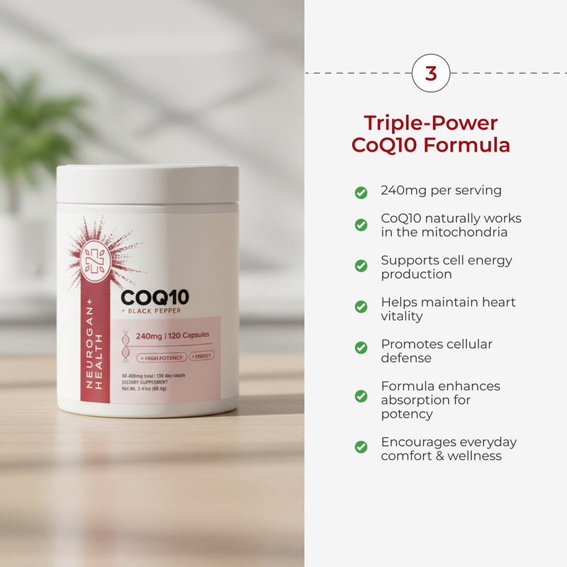 CoQ10 Capsules (240 MG): Powers mitochondrial function to enhance endurance, focus, and overall cognitive performance throughout the day. Enhanced with piperine (black pepper extract) to enhance absorption.