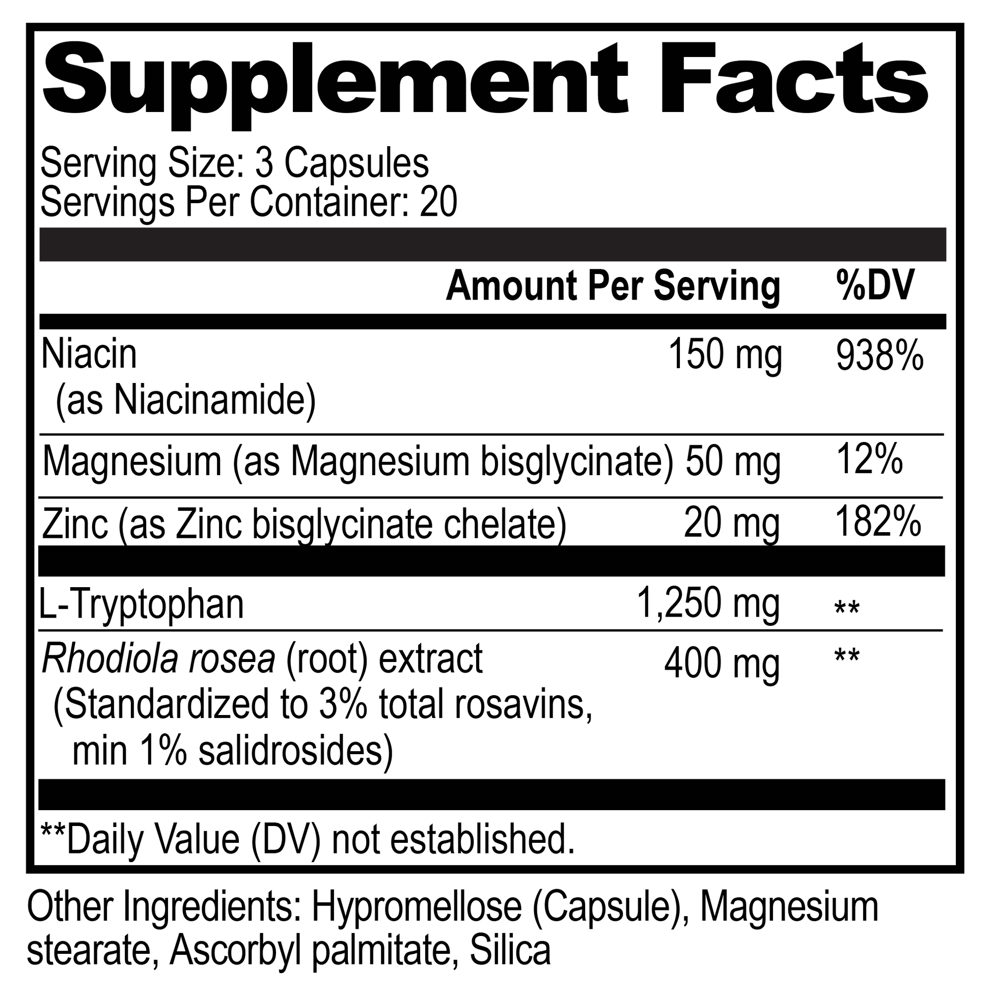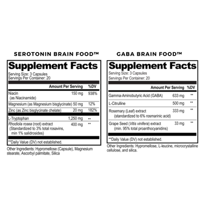 Serotonin Brain Foodâ„¢ is designed to support the body's natural production of serotonin, a neurotransmitter essential to mental well-being.* This supports a positive mood*, promotes a sense of well-being, and relieves stress.*