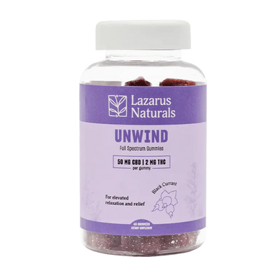 Unwind Full Spectrum CBD + THC Gummies – Black Currant – Lazarus Naturals
