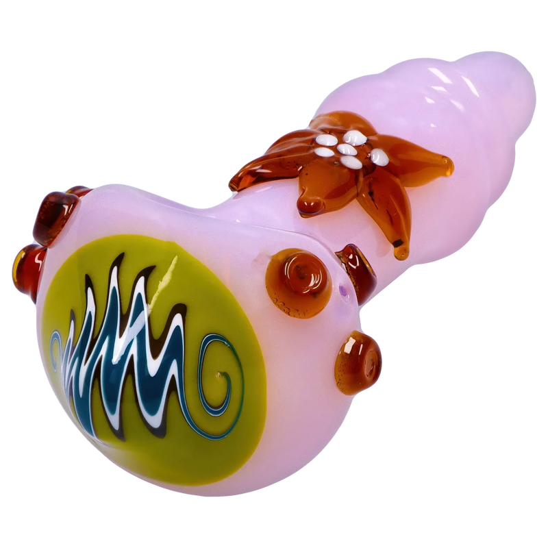 The DankStop Star Reversal Spoon Pipe - 4.5 in. is a meticulously crafted, handheld glass pipe featuring a spoon-shaped bowl and a reversal design that cools smoke for smoother hits.