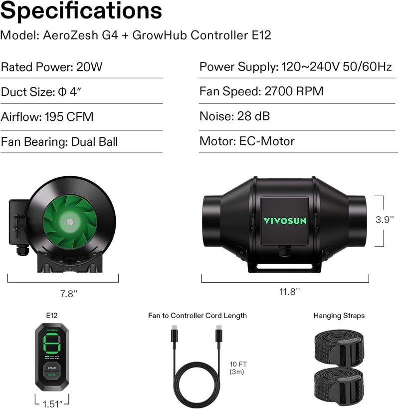 - Please Copy coupon before purchasing VIVOSUN G8 8" Inline Duct Fan & 3 Cycle Modes E12 Speed Controller, AeroZesh Grow Tent Kit Ventilation Fan with 725 CFM EC Motor, Programmable Exhaust Fan for Heating Cooling Booster, Hydroponics. We may earn a commission if you buy via our links.