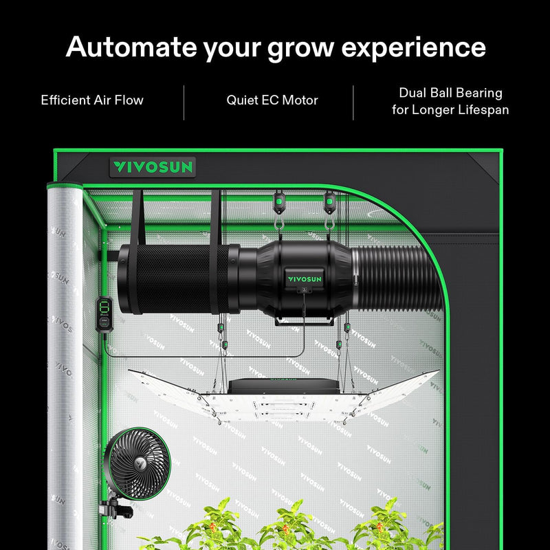 VIVOSUN G8 8" Inline Duct Fan & 3 Cycle Modes E12 Speed Controller, AeroZesh Grow Tent Kit Ventilation Fan with 725 CFM EC Motor, Programmable Exhaust Fan for Heating Cooling Booster, Hydroponics