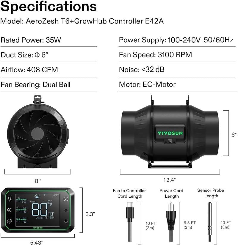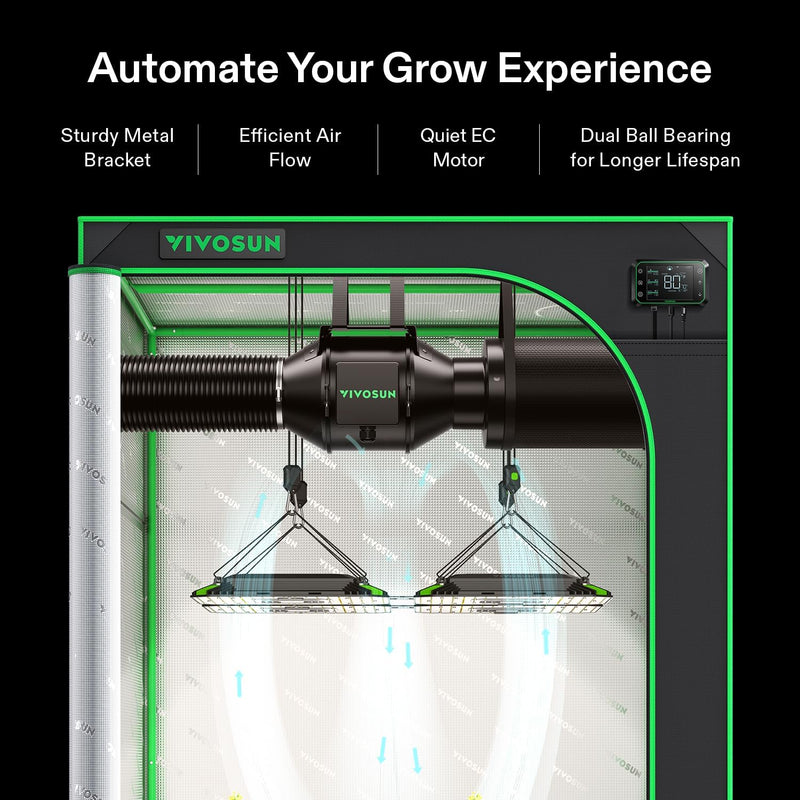 - Please Copy coupon before purchasing VIVOSUN G8 8" Inline Duct Fan & Temperature Humidity Controller, E42A WiFi-App Control AeroZesh Grow Tent Fan& Smart Thermostat, 725 CFM EC Motor Exhaust Fan for Heating Cooling, Greenhouse Accessory. We may earn a commission if you buy via our links.