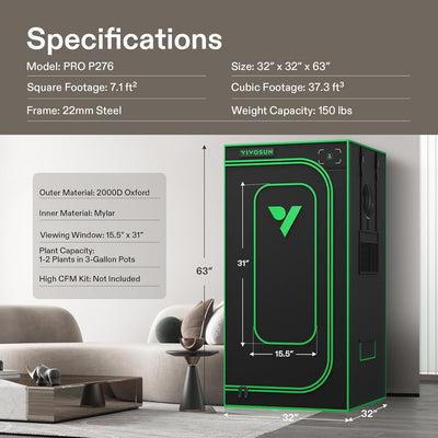 - Please Copy coupon before purchasing VIVOSUN P276 32"×32"×63" PRO Grow Tent, with Thick 1 inch Poles, Strengthened High Reflective Mylar Oxford Fabric & Extra Hanging Bars for Hydroponics Indoor Plant for AeroLight A150, No High CFM Kit. We may earn a commission if you buy via our links.