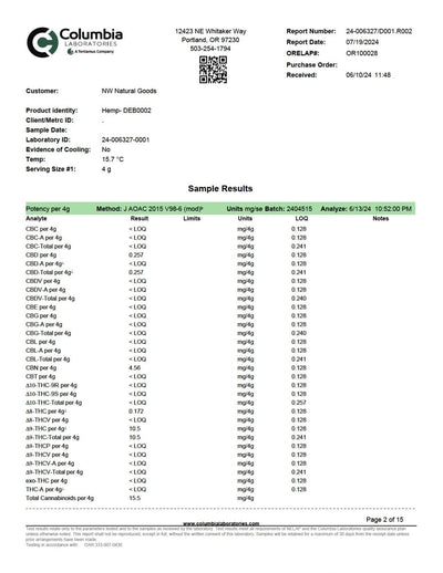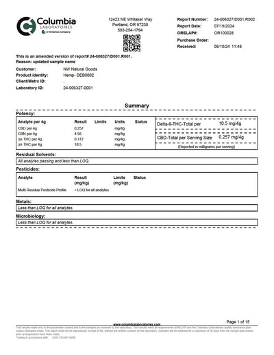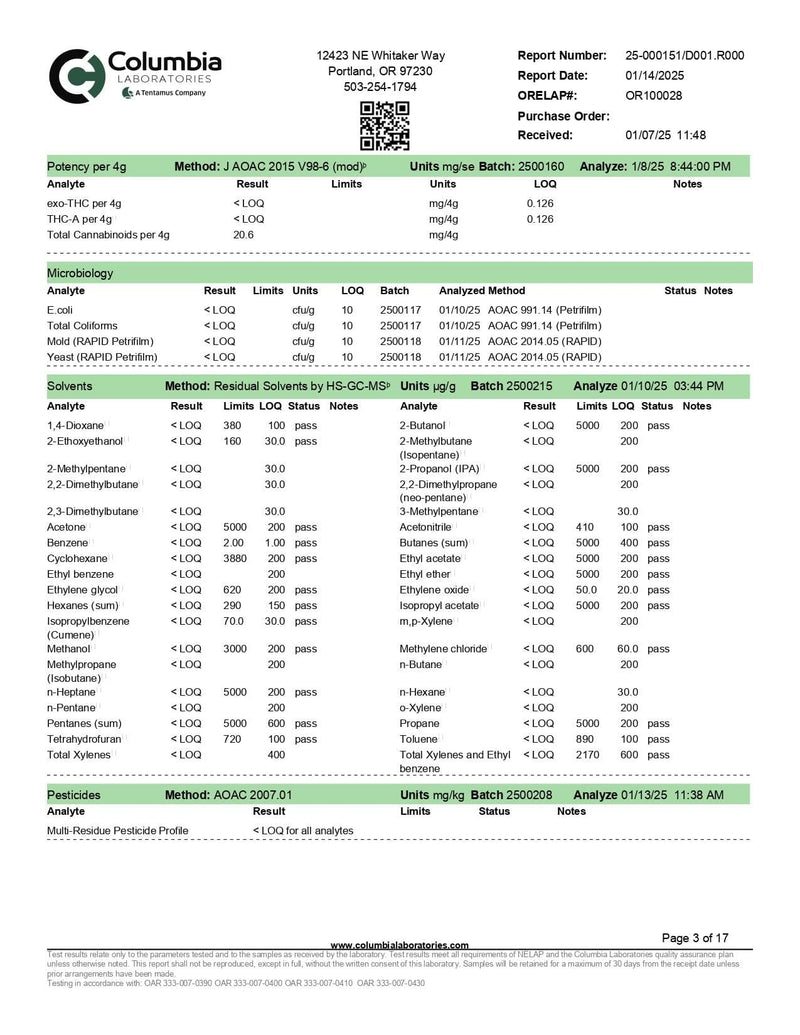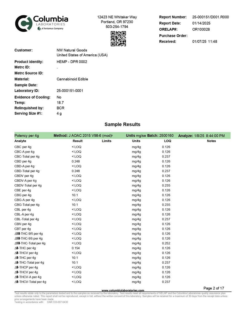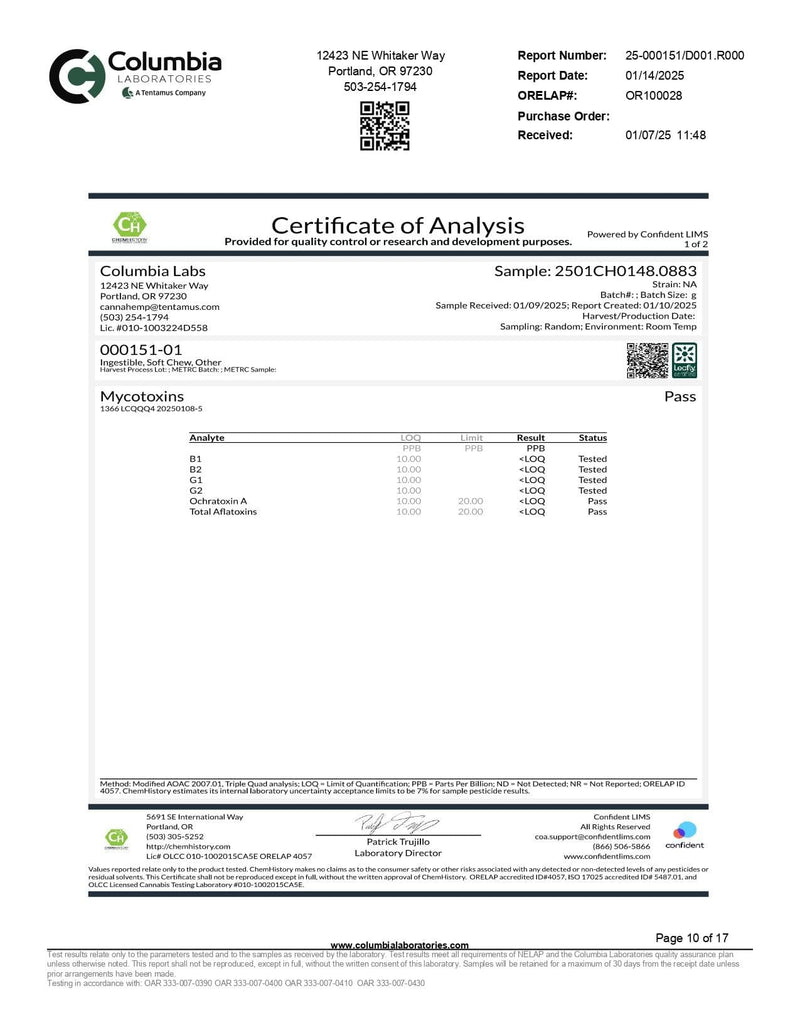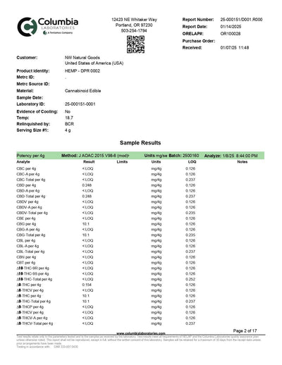 Ingredients: Sugar, Tapioca Syrup, Water, Pear Juice Concentrate, Gelatin, Coconut Oil, Natural Flavoring, Citric Acid, Malic Acid, Pectin (Pectin, Sodium Citrate), Cannabis Extract, Hemp Extract, Sunflower Lecithin