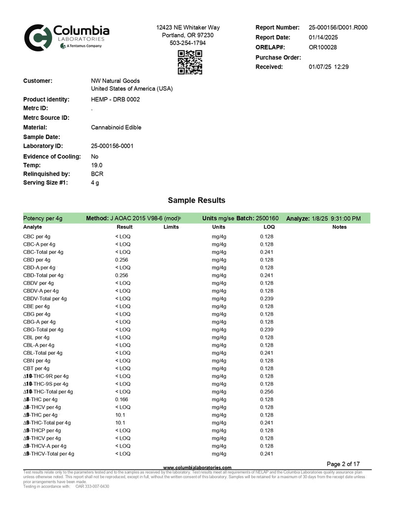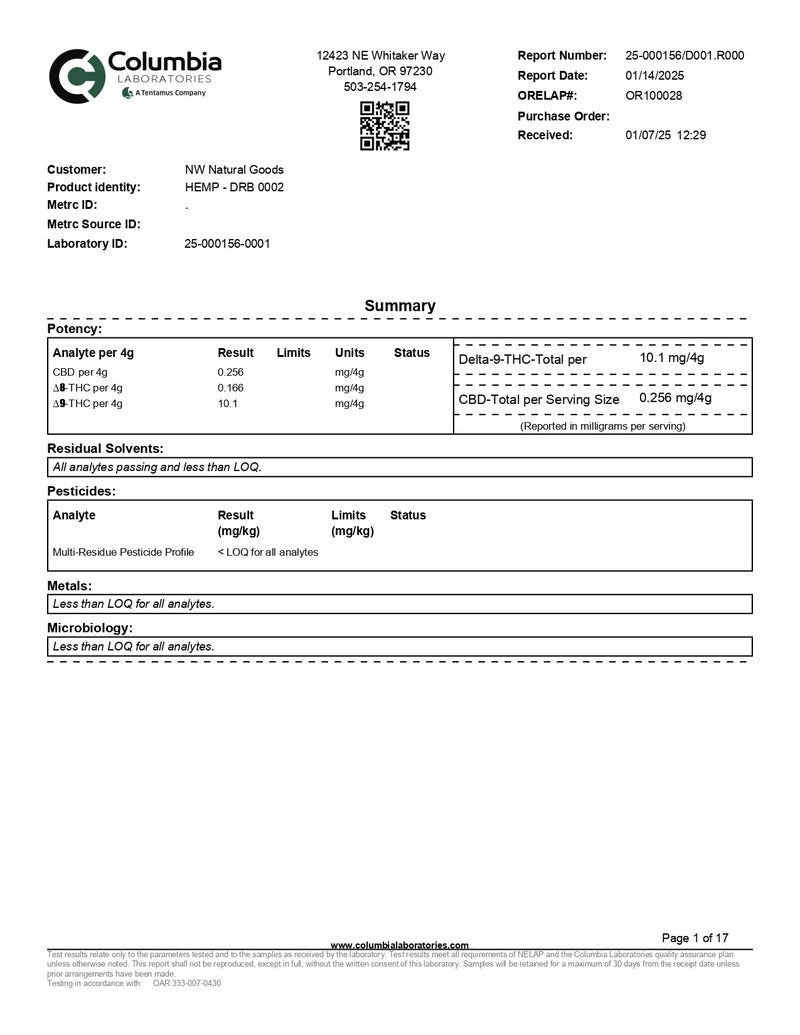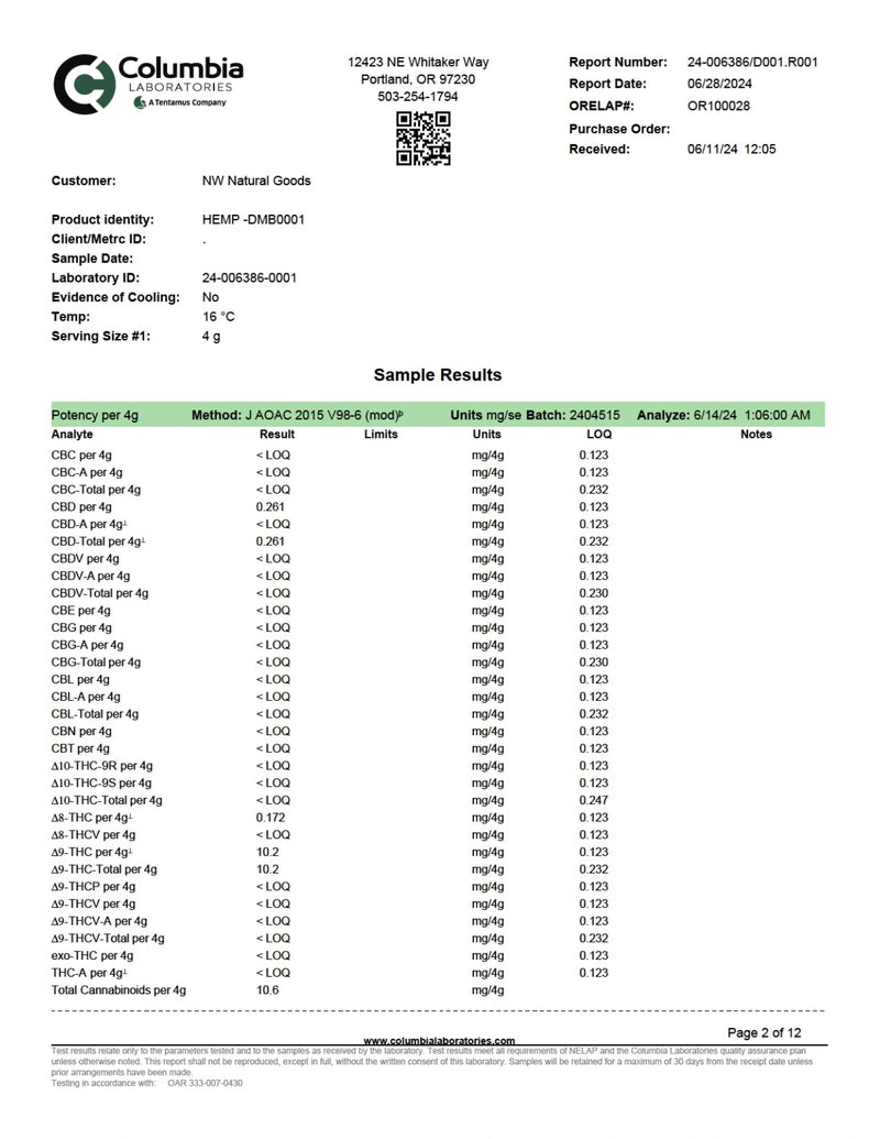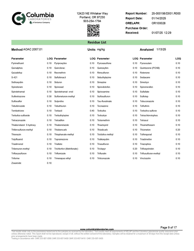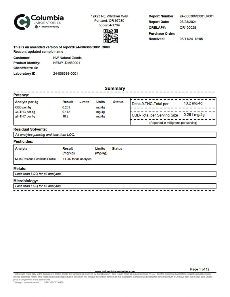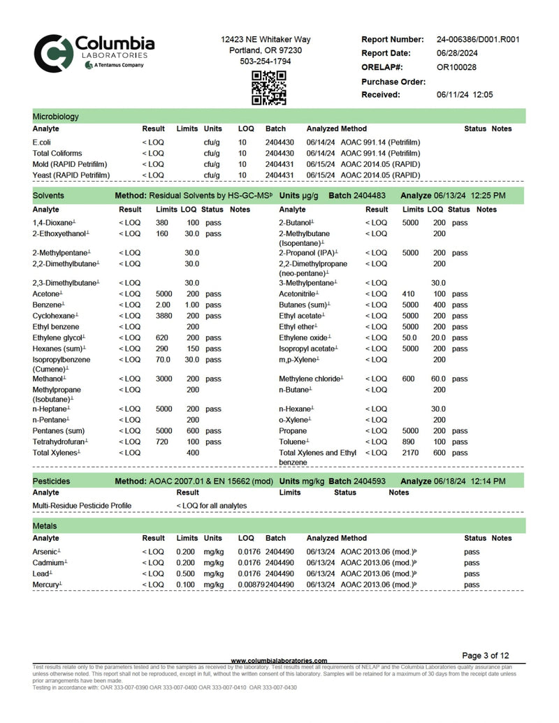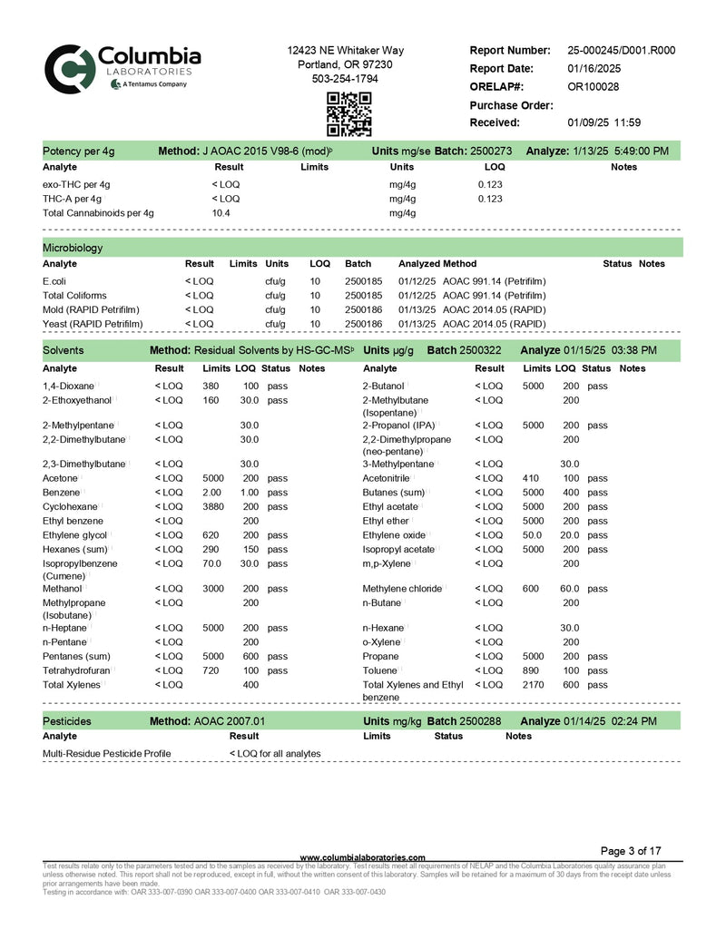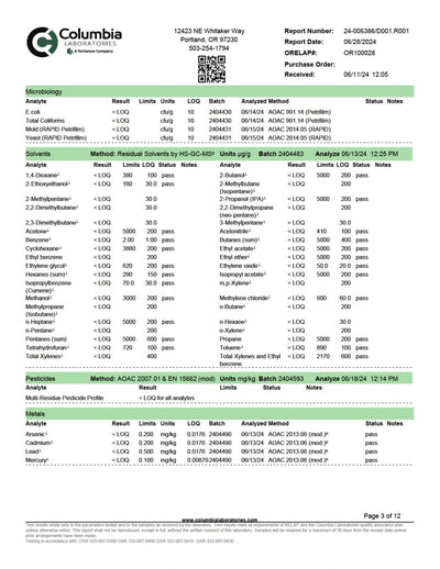 - COA lab results available