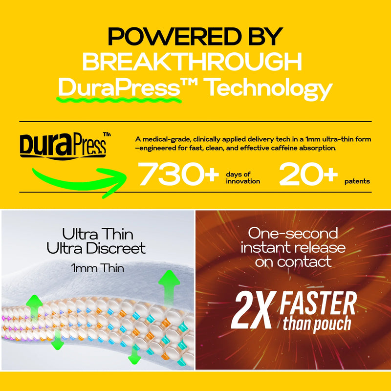 Natural Caffeine, Water, Flavoring, Pullulan, Pectin, PEG, Sweeteners.