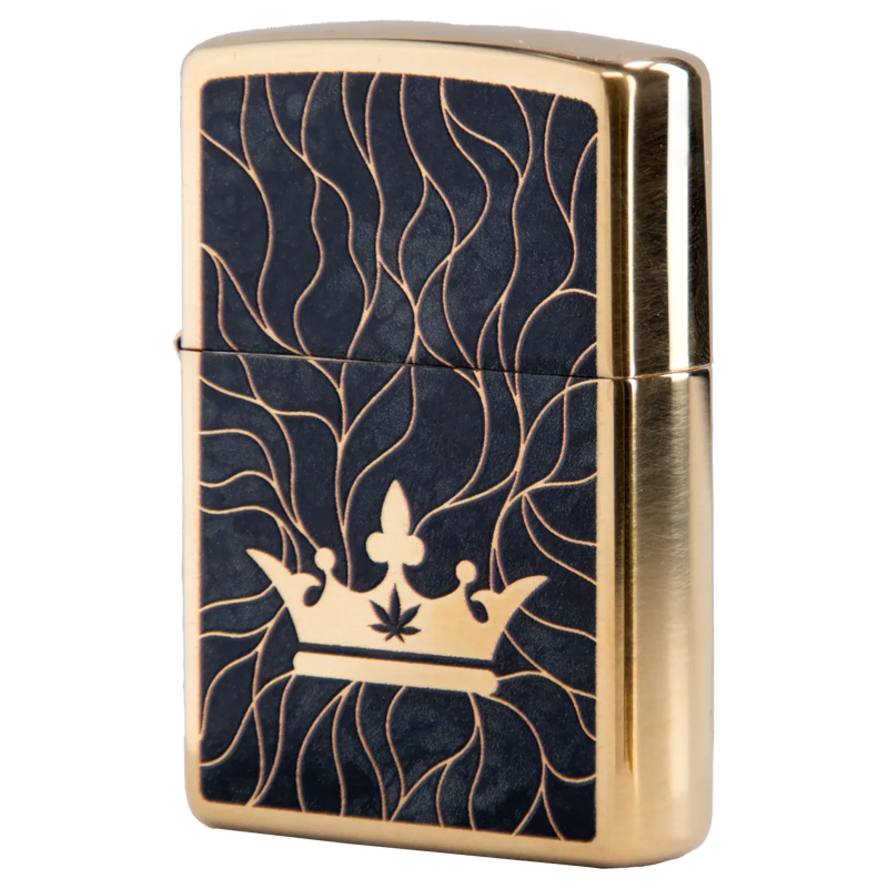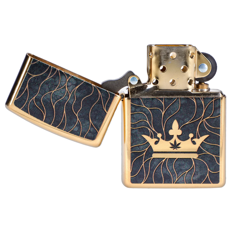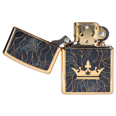 The elegantly embossed crown, adorned with a cannabis leaf, adds a unique, refined touch, making this Zippo a standout accessory for those who embrace beauty and opulence in every detail.