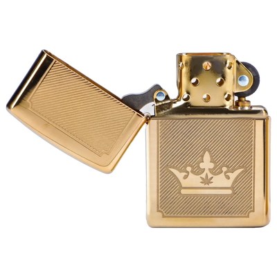 Featuring a gleaming golden finish with intricate line details and a regal crown emblem, this Zippo is designed for those who appreciate both sophistication and triumph. A perfect accessory for those who seek to carry a reminder of victory and luxury in every moment.